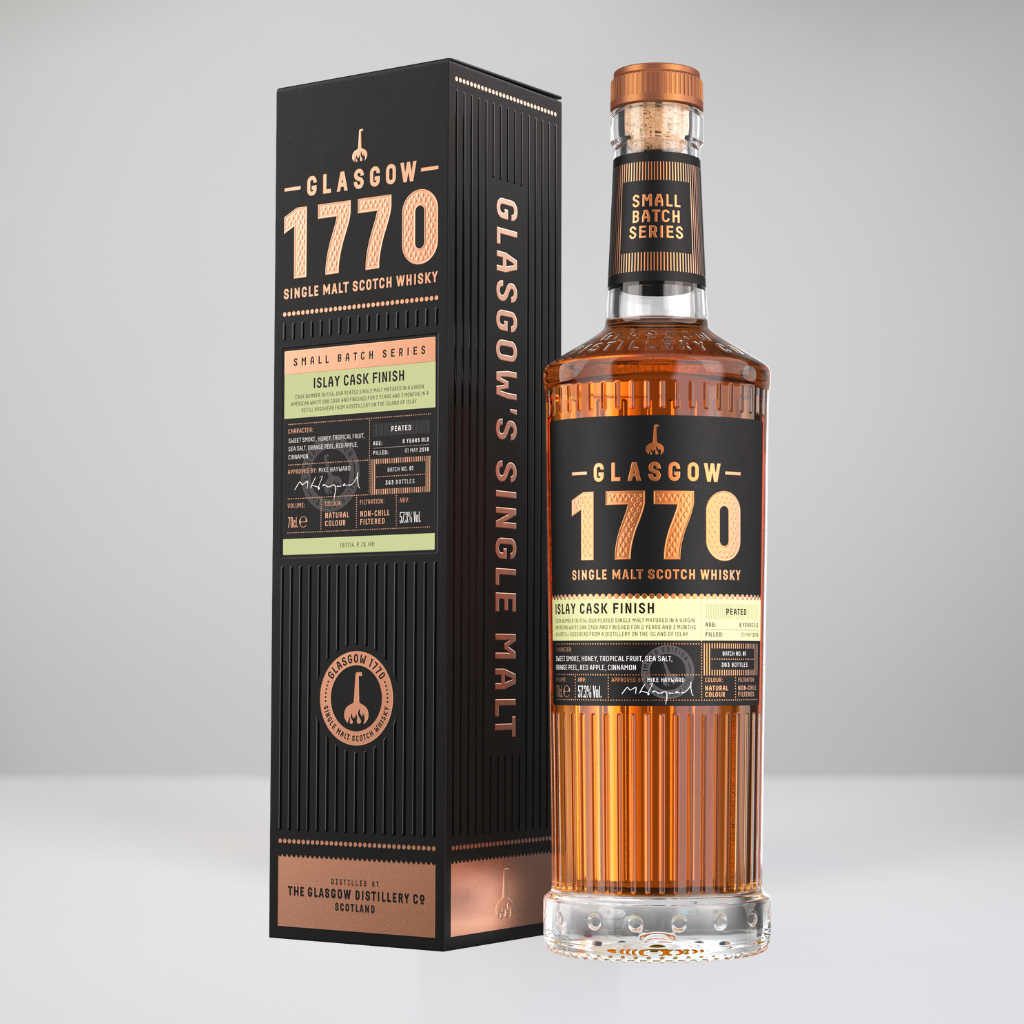 The contents of a single finishing cask, this six-year old release from The Glasgow Distillery showcases their own peated single malt, distilled from malted barley imbibed with mainland peat smoke, that has then been finished in a refill bourbon hogshead that previously held peated single malt from an Islay distillery.